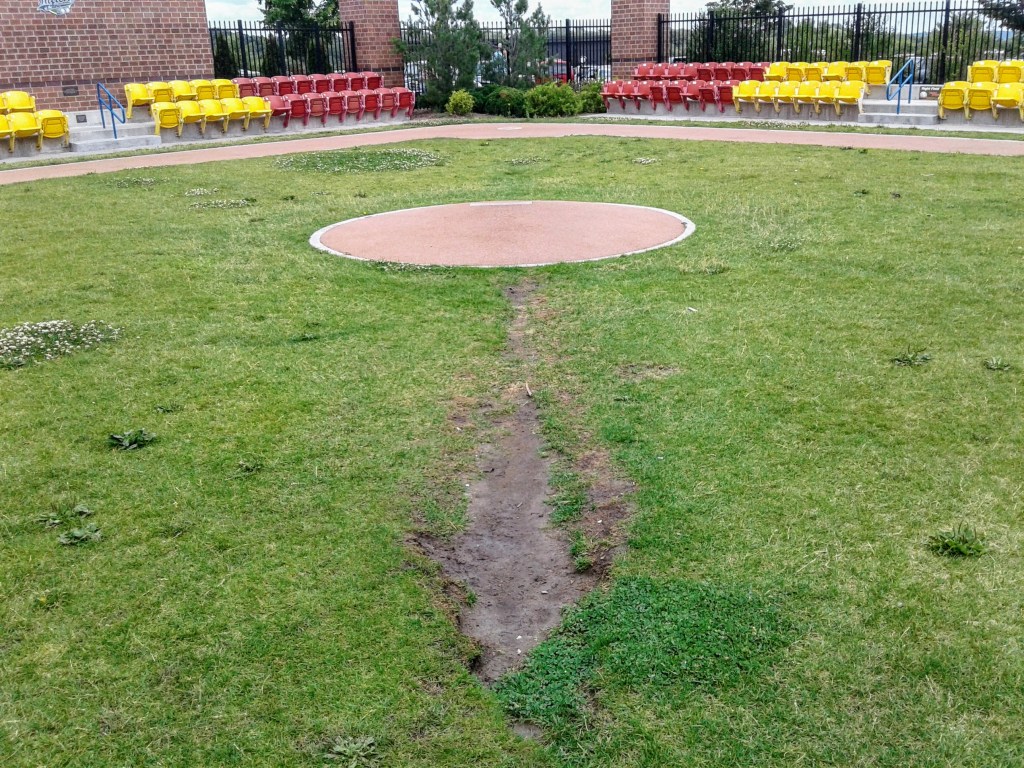 Sadly, the infield turf appeared to be suffering from neglect. The grass was a very pale shade of green and a variety of broadleaf weeds had filled the cavities of sparsely turfed areas. Such condition would have never been allowed during the tenure of Rosenblatt’s veteran groundskeeper Jesse Cuevas.